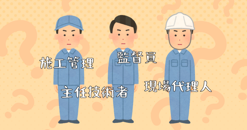 【早わかり】監理技術者等・施工管理・現場代理人・監督員・工事監理それぞれの違いとは?