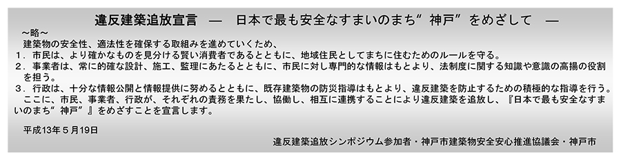 特に、被災地である神戸市は力を入れており、『違反建築追放シンポジウム』を全国の自治体で初めて開催したほか、徹底したパトロールや通報電話の設置といった取り組みを行い、その結果、工事後の完了検査実施率は99%以上となっています。