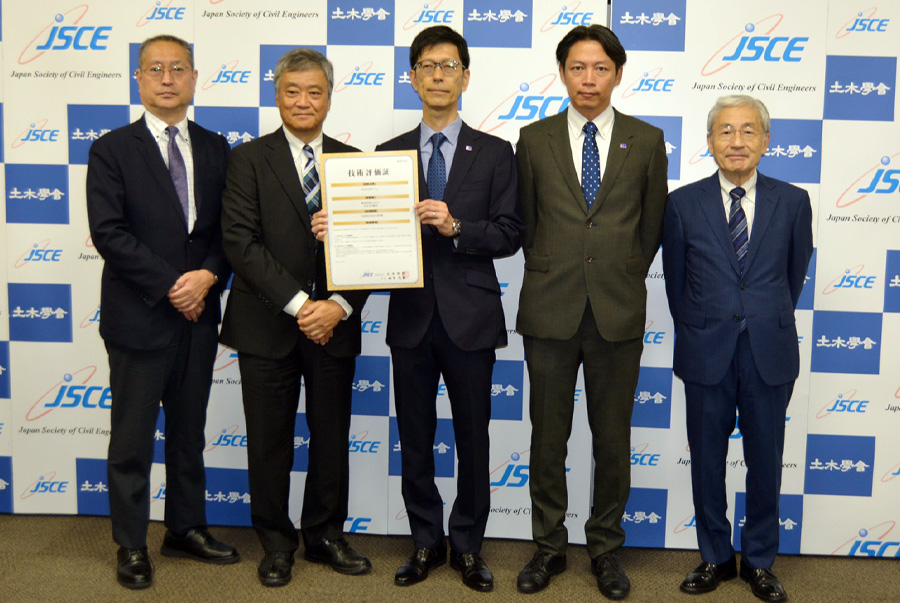 土木学会は10月23日、都内の土木学会本部で技術評価証授与式を開催した。認定対象は、超高強度合成繊維補強コンクリート(ESCON)と補強鉄筋を組み合わせたRC桁のESCONビーム。ESCON協会(宮原一郎会長)とエスイー(東京都新宿区)が評価を依頼した。