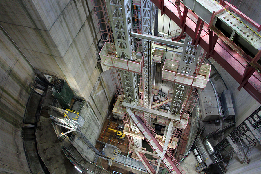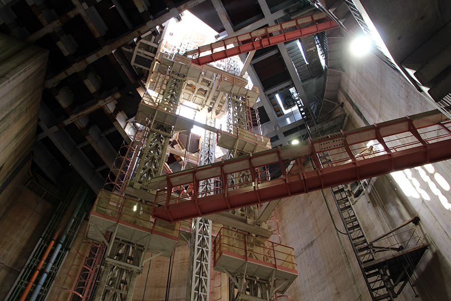 迫力がありますね!資材を運ぶリフト、人が出入りするためのエレベーターや階段などが整備されています。