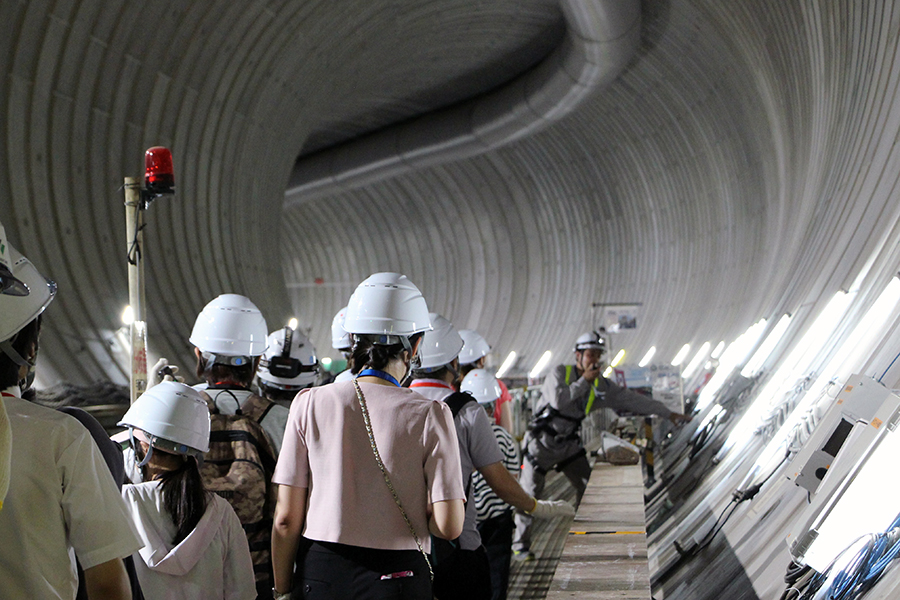 この調節池の建設現場で、小学生の親子を対象とした現場見学会が2025年7月29日、公益社団法人土木学会・地下空間研究委員会の主催により開かれました。今回、弊編集部も同イベントに同行させていただき、参加した親子とともに建設中の地下トンネルの中を見学してきました。