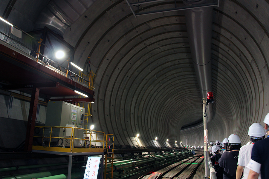 こちらが内径12.5m、セグメントで内壁を覆ったトンネルの中です!