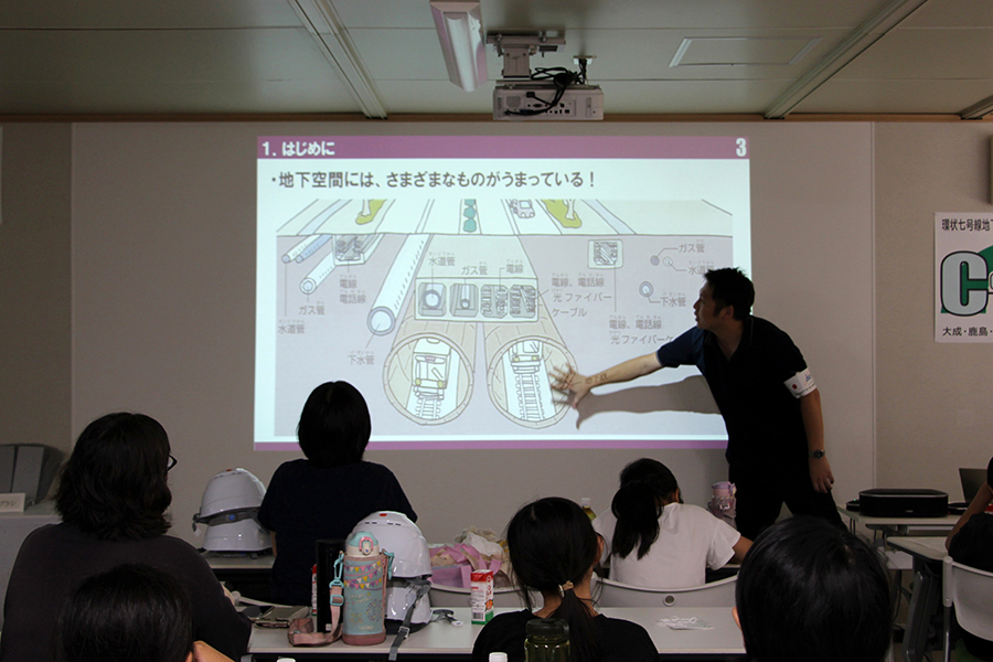 さて、環状七号線地下広域調節池の中を見学した後は、再び現場事務所へ戻り、ここまでに学んだことを振り返るクイズや国学院大学の大門創・准教授による“授業”で、地下空間に関する理解をさらに深めました。