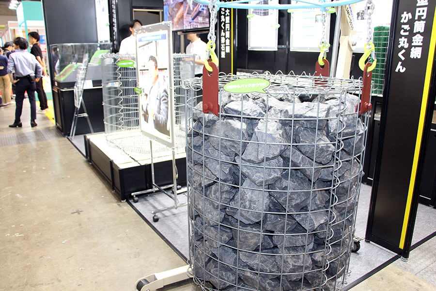 石が詰められた大きなかごが目を引くこちらは、昭和機械商事株式会社のブースです。同社担当者も「『インパクトがある』と声をかけられる」と話します。