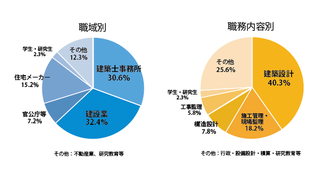 職務内容は建築設計が40.3%、施工管理・現場管理が18.2%で、合わせて6割近くを占めています。