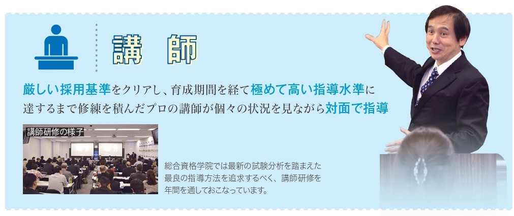 それは、映像やインターネットを用いた講座では実現できないもの。どんなに手間や時間がかかろうとも、総合資格学院では合格により近い「人」が中心にいる講義を貫き続けます。