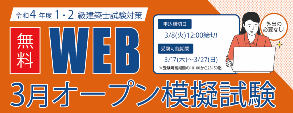 合格実績№1スクールの総合資格学院では、1級・2級建築士受験生を対象にした無料の「オープン模試」を3月に開催するそうです。
