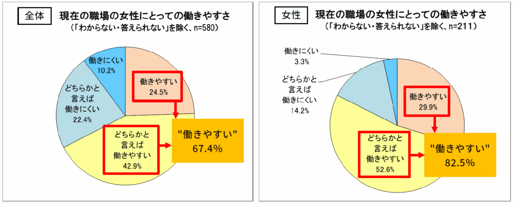 女性の82.5%が“現在の職場は女性が働きやすい”と回答