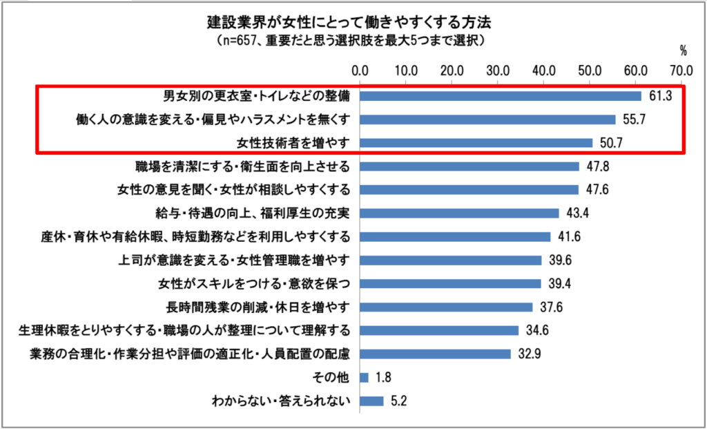 建設現場で女性がもっと働きやすくするための意見やアイデア