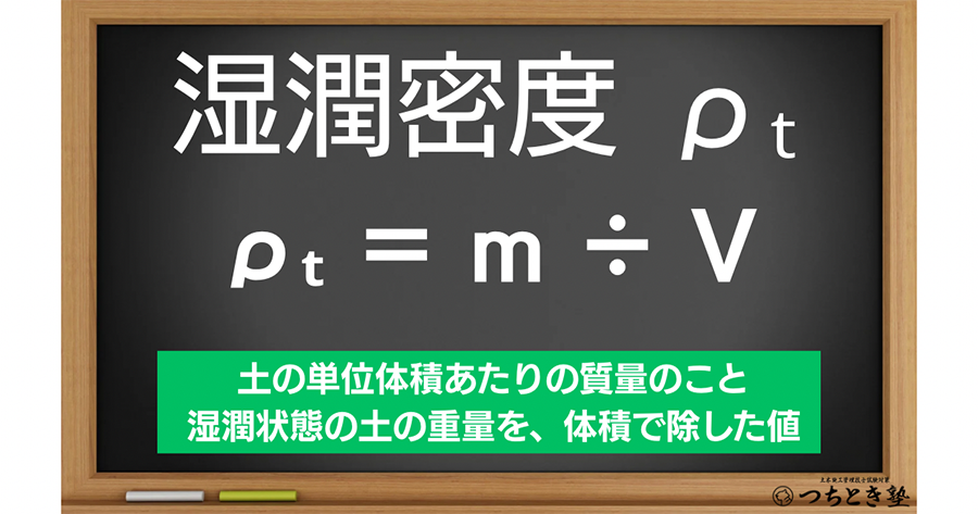 土粒子と水の重さを足したもの(Mw+Ms)に対して、土全体の体積(V=Vv+Vs)で割ったものを表します。