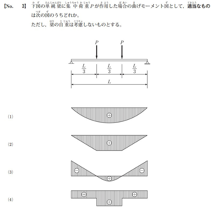 | 3問目 | 構造力学 | 単純梁に集中荷重が作用した場合の曲げモーメント |