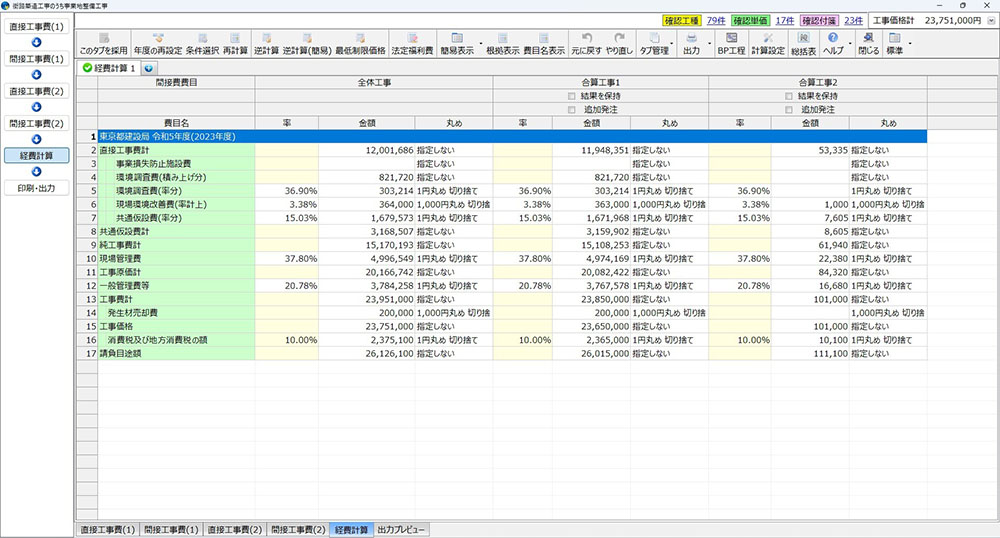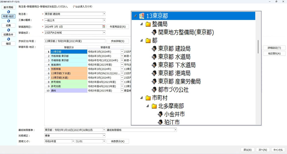 発注者ごとに異なる当初設計時の積算環境は、それぞれの特性に合わせた設定を自動で行う『発注者マスタ』機能で再現。「設計書を読み込めば、発注者別の単価適用や積算年度、諸経費条件などの重要な積算条件がおおよそ自動設定されるため、オペレーションミスの防止につながります」(小川氏)