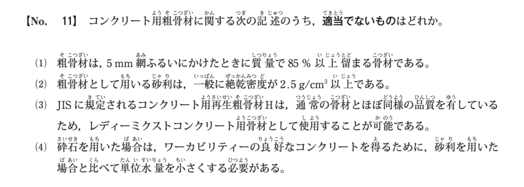 骨材については難しい問題も出題されており、中にはあきらめた方が良いレベルの問題が出ることもあります。