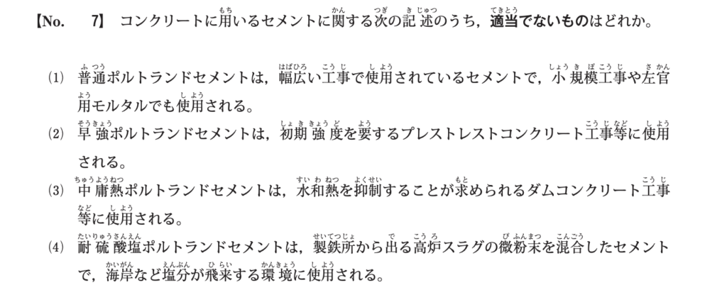 セメントの問題はここ5年で、令和5年度しか出題されていませんが、出題されたら得点のチャンスです。