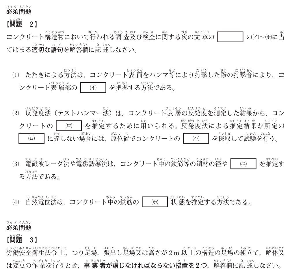 - 施工経験の記述式問題